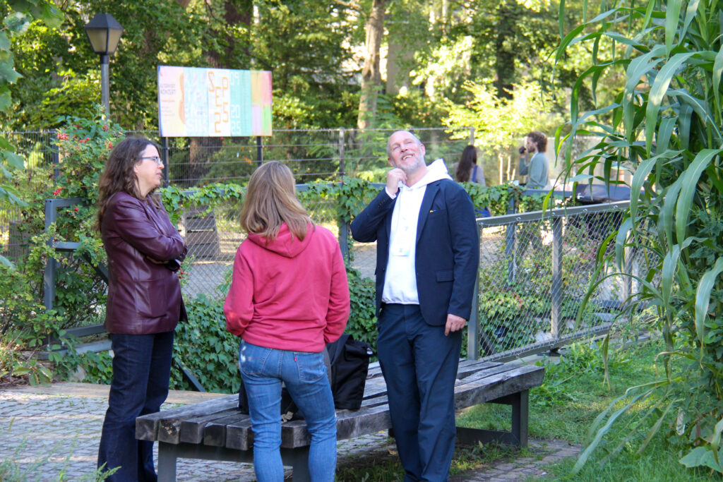 Das silent green Kulturquartier im Wedding war als Location ein echtes Highlight. Besonders am Nachmittag, als sich das Wetter der sonnigen Stimmung anpasste, genossen unsere Besucher:innen das weitläufige Gelände und saßen auch am Abend noch im wunderschönen Garten des MARS.